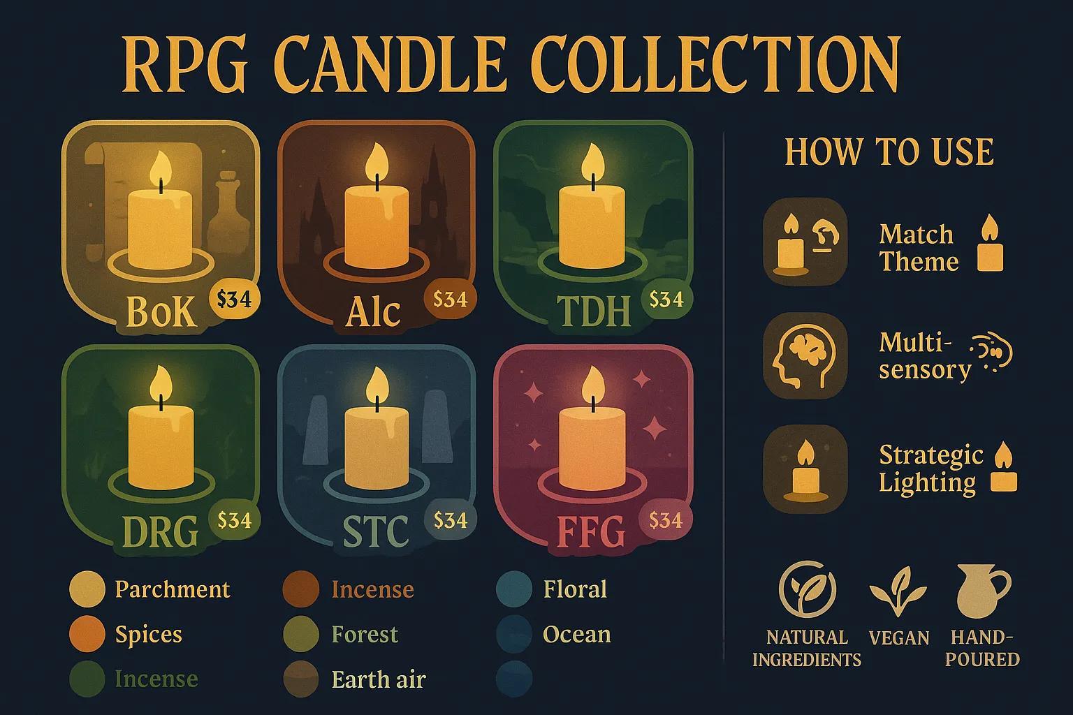When it comes to creating the perfect fantasy ambiance, several candles stand out in our collection. Each candle is designed to evoke specific themes and settings, making them ideal for various gaming scenarios.