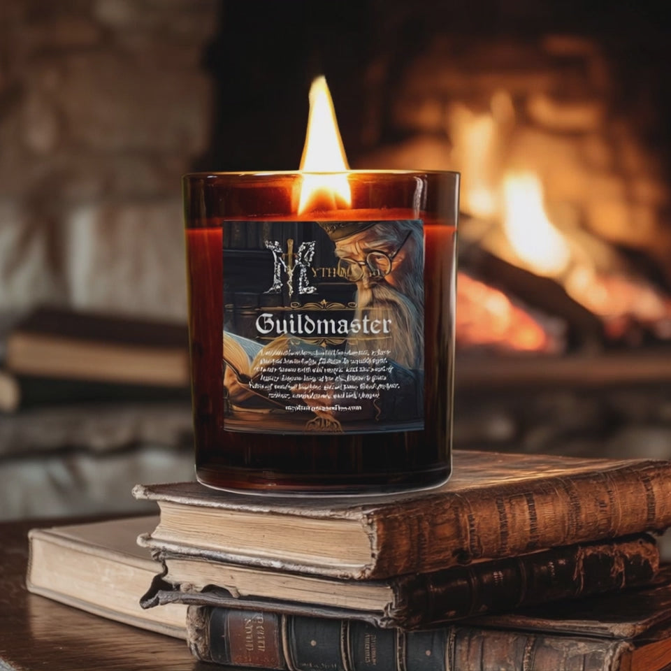 The Guildmaster candle is infused with the essence of this sacred space. As the flame ignites, it releases a commanding blend of smoked leather and spiced pine, stirring visions of dragonhide-bound grimoires and the whisper of old enchantments echoing from vaulted stone walls. Black pepper and vetiver rise like the breath of secret spells—sharp, grounded, watchful. Sandalwood and inky parchment linger long after the wick has cooled, a quiet reminder of your oath to the Guild and the power that now rests in your hands.