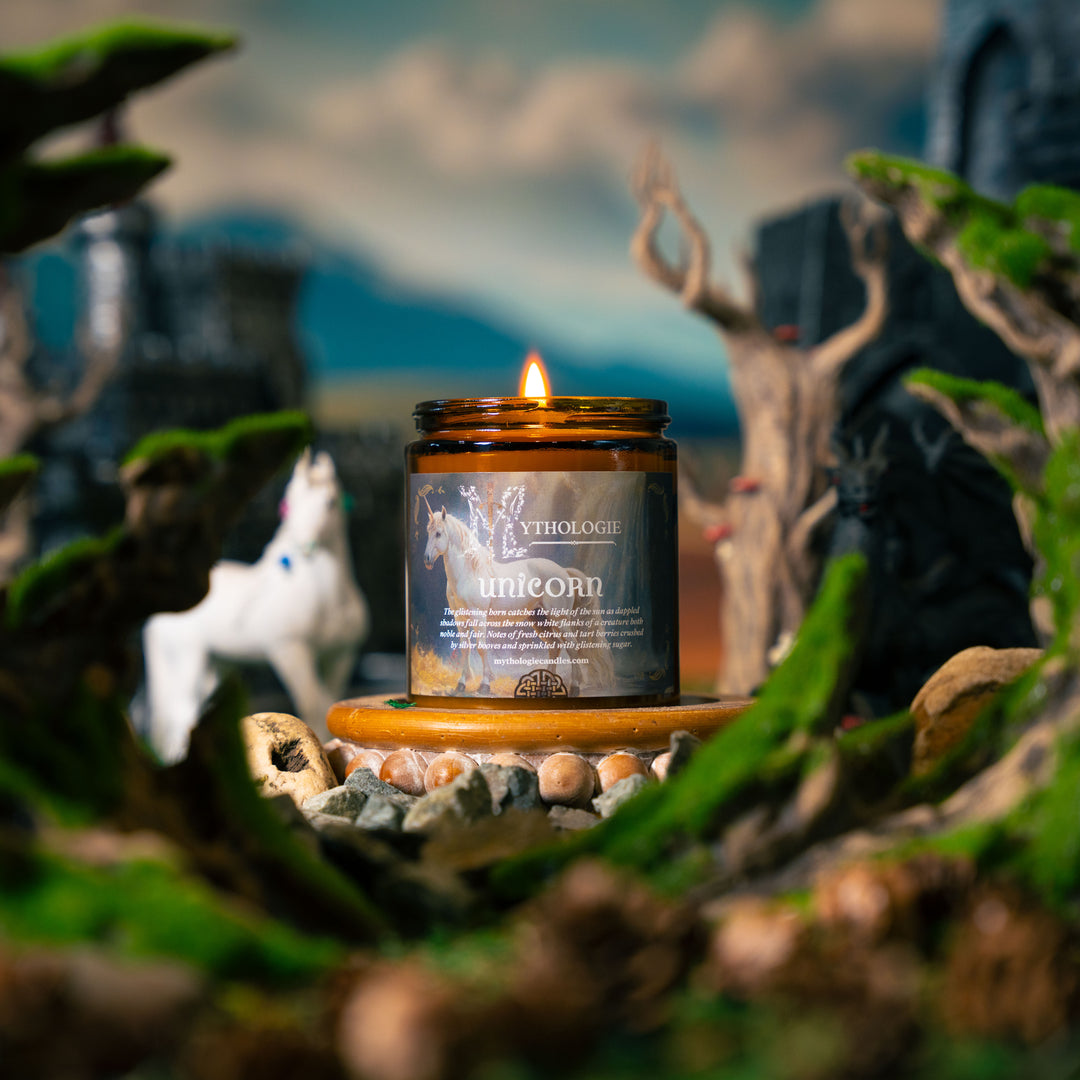 They’re rooted in centuries of legend, brought to life through layered fragrance and rich, immersive design. Each candle is inspired by a creature from ancient lore, captured in scent and created to reflect their world—whether born of forest, flame, sky, or sea.