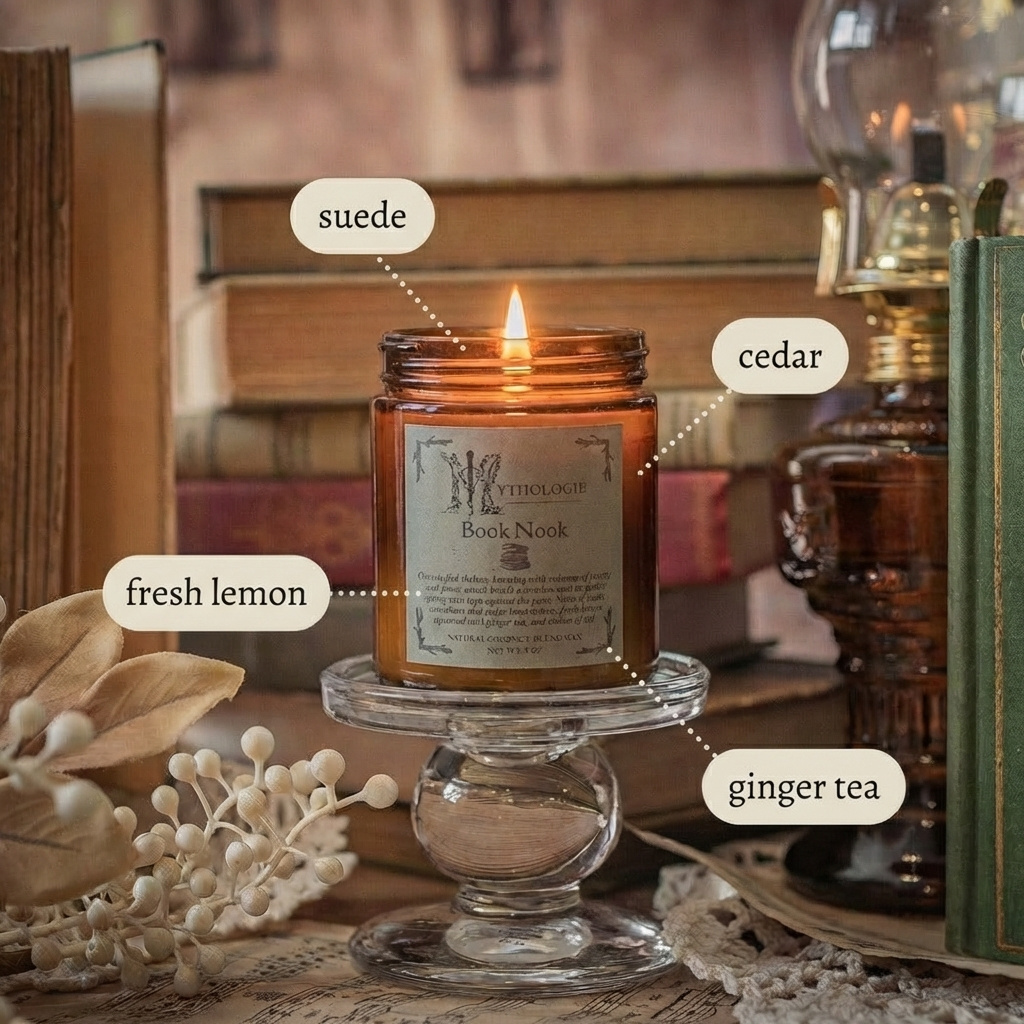 Book Nook: Notes of suede armchairs and cedar bookshelves, fresh lemon squeezed into ginger tea, and stories of old.