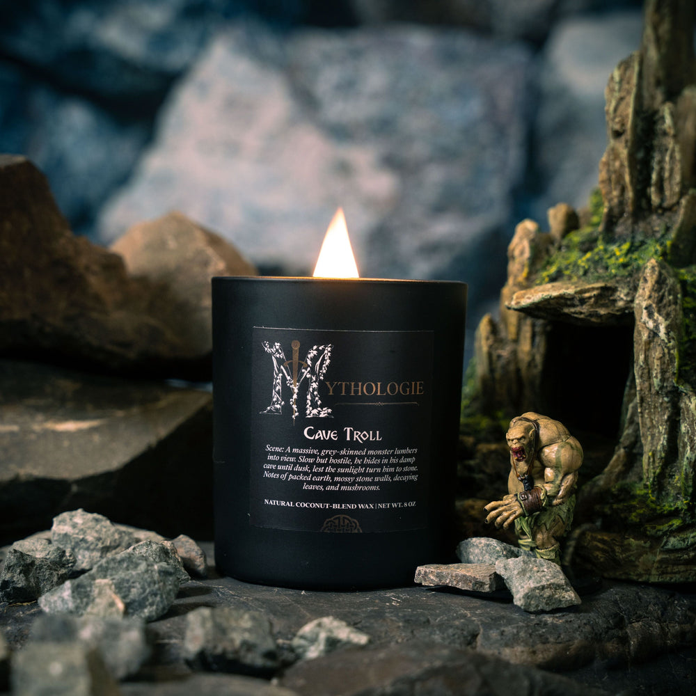 By lighting the Cave Troll candle, you are instantly transported to another realm! Immerse yourself in the damp, mossy scent as you leaf through the pages of a fantasy novel or watch a scene of fighting orcs! Set the perfect atmosphere and enhance your worldbuilding on a campaign set in the dark recesses of the mountains by adding Cave Troll to your gaming sesh!