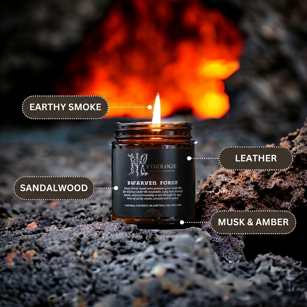 Set Dwarven Forge alight and create the ultimate immersive experience for watching an epic fantasy movie or gaming with friends! Explore the vast mines of the mountains with the scent of molten metal and earthy smoke, while the atmospheric crackling wooden wick transports you to the blazing furnaces through its ambient sound.